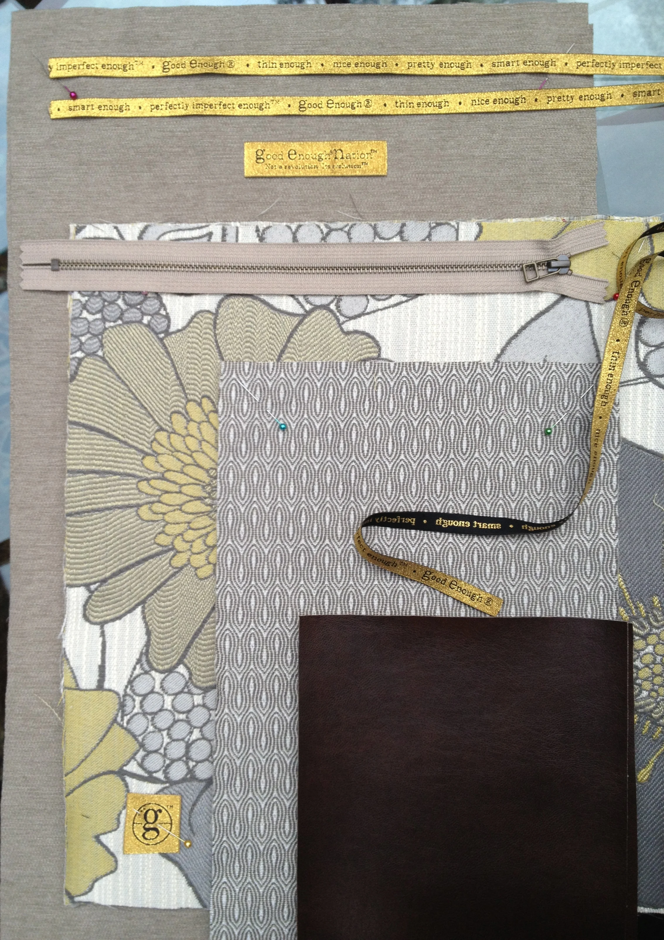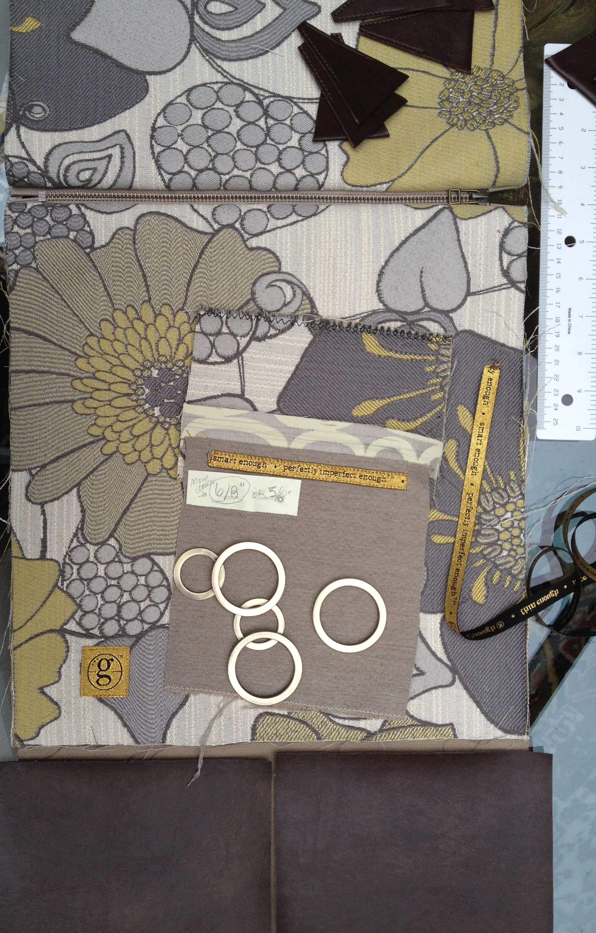 Organizing components and cutting pattern pieces for the cross body style bag.